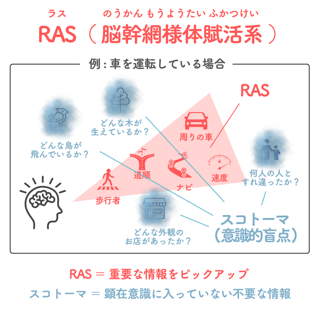 この時に重要なのが「 RAS ( 網様体賦活系 ) 」を活かすこと。